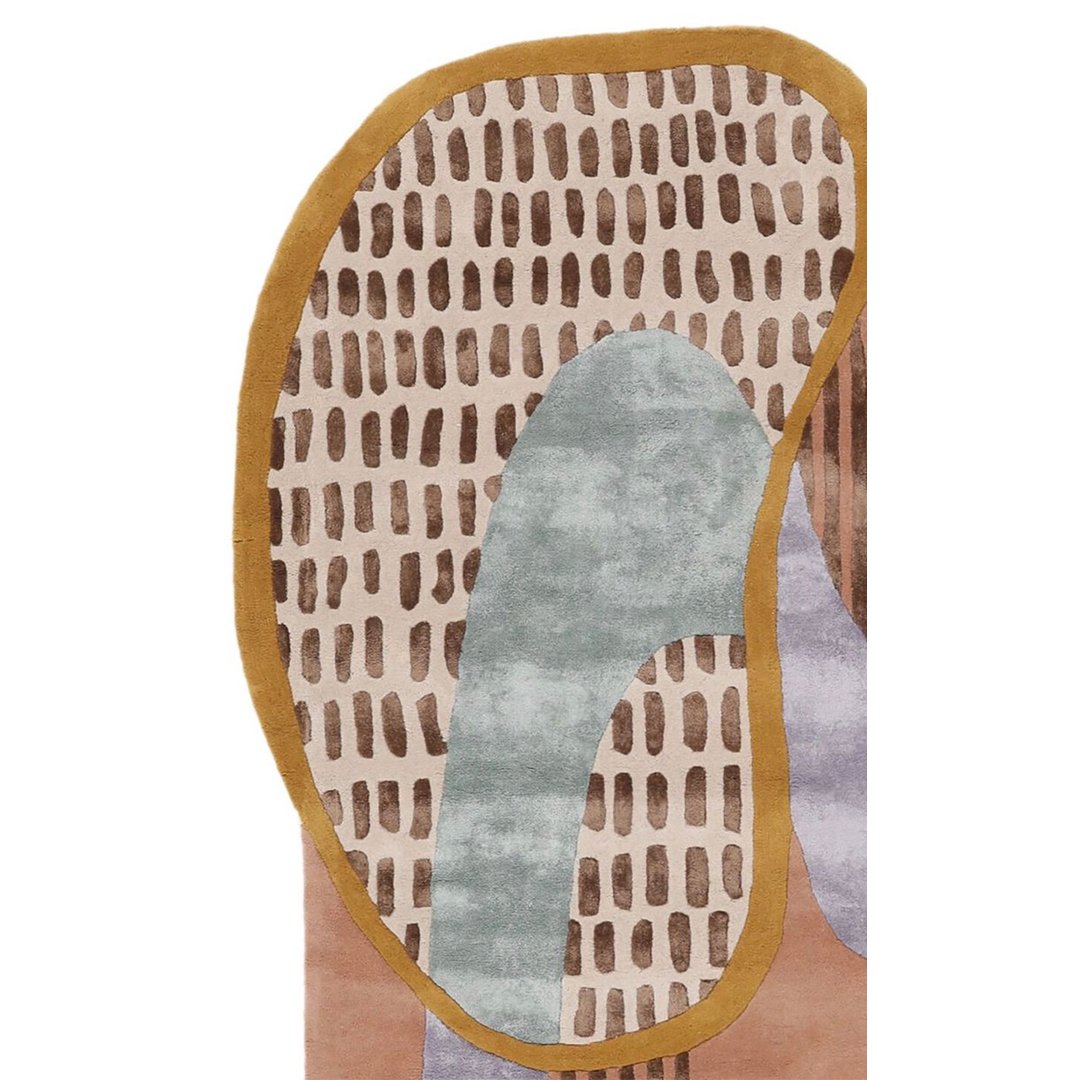 Aurora Clay blends soft geometry with flowing natural forms. Its unique abstract design is rendered in rich viscose, creating a subtle, light-catching finish. The juxtaposition of structured dashes with freeform color fields in peach, sage, violet, and mustard makes it perfect for elevated interiors that celebrate art and movement. This rug radiates calm sophistication and tactile charm.
