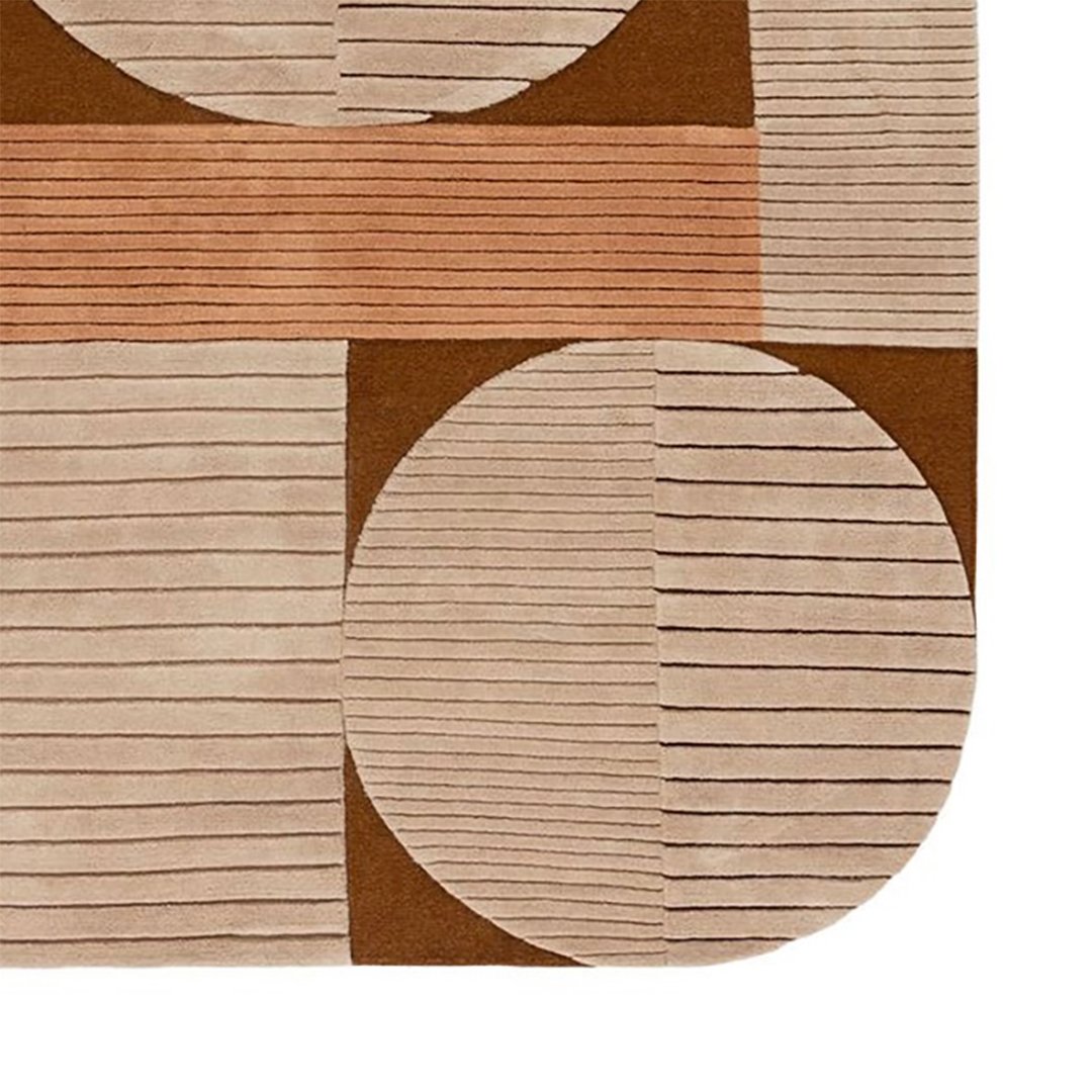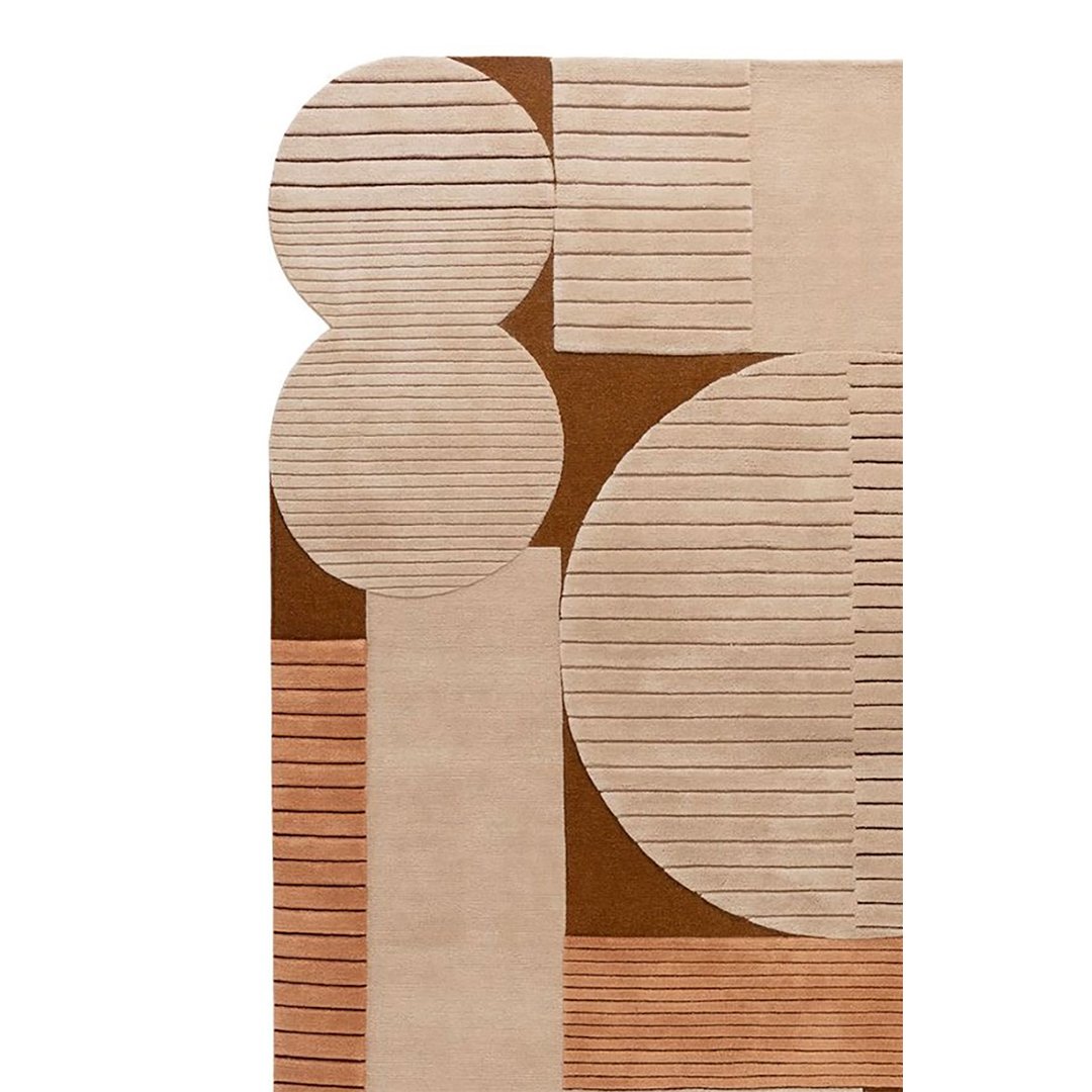 Geo Clay is a celebration of structured geometry balanced with warm earthy tones. With overlapping circles and rectangles etched with fine lines, this rug brings a harmonious sense of architecture to any room. Perfect for modern interiors that embrace clean lines and soft neutrals.