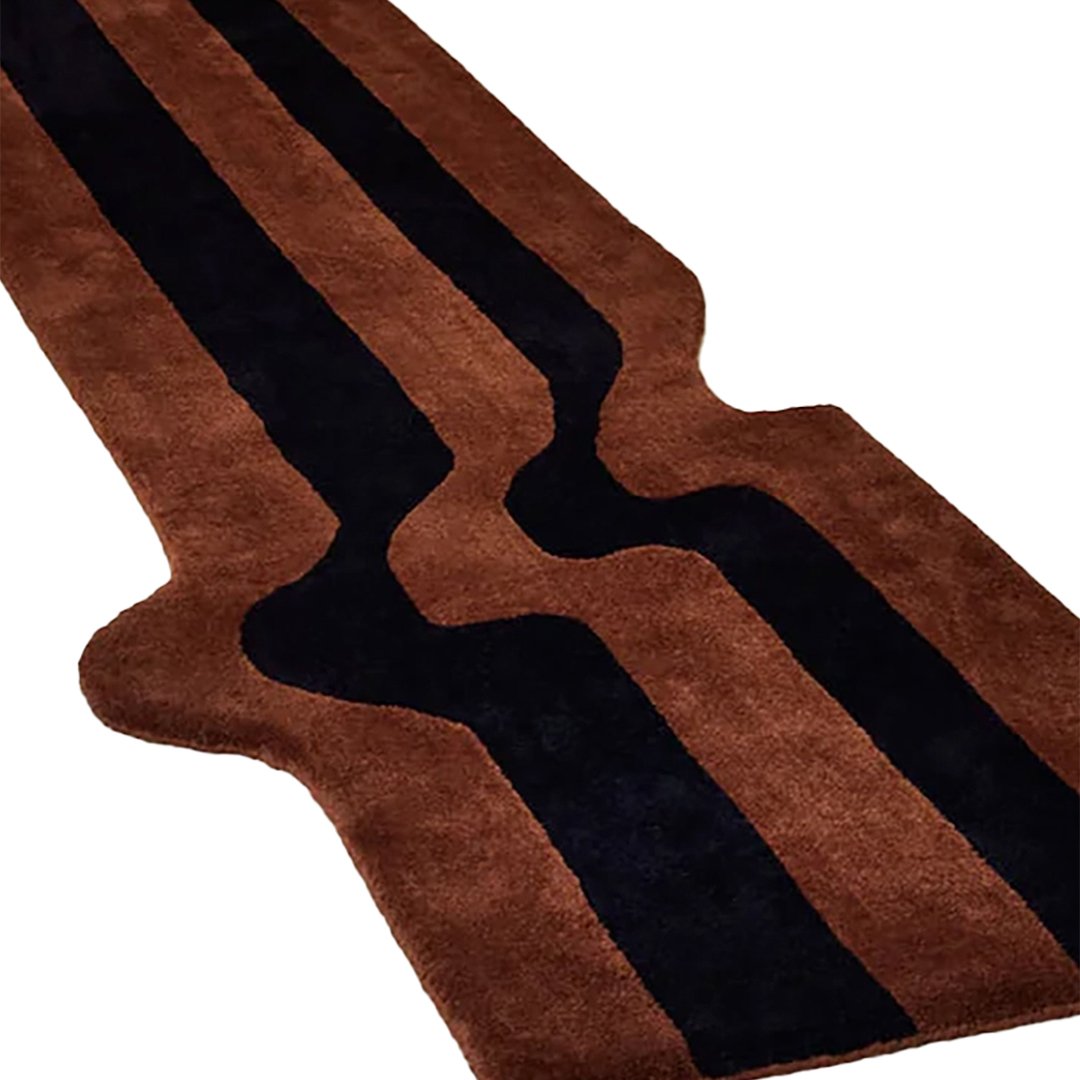 Linear Flow Wool Rug – Rust & Black | Abstract Minimalist Runner