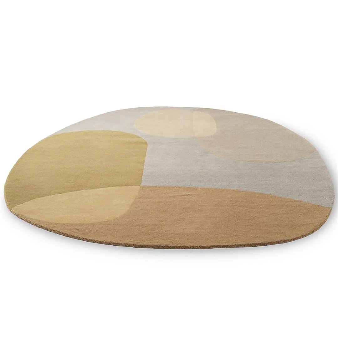 A rug with gentle gradients of grounded tones with natural colors in soft curve