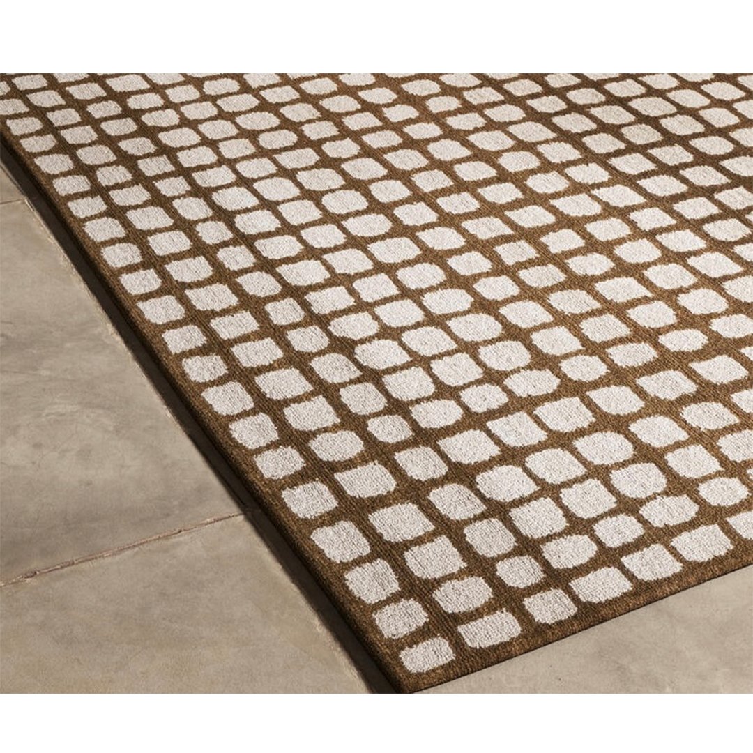 Pebble Grid Wool Rug – Warm Brown & Ivory Geometric | Hand-Tufted Contemporary Design