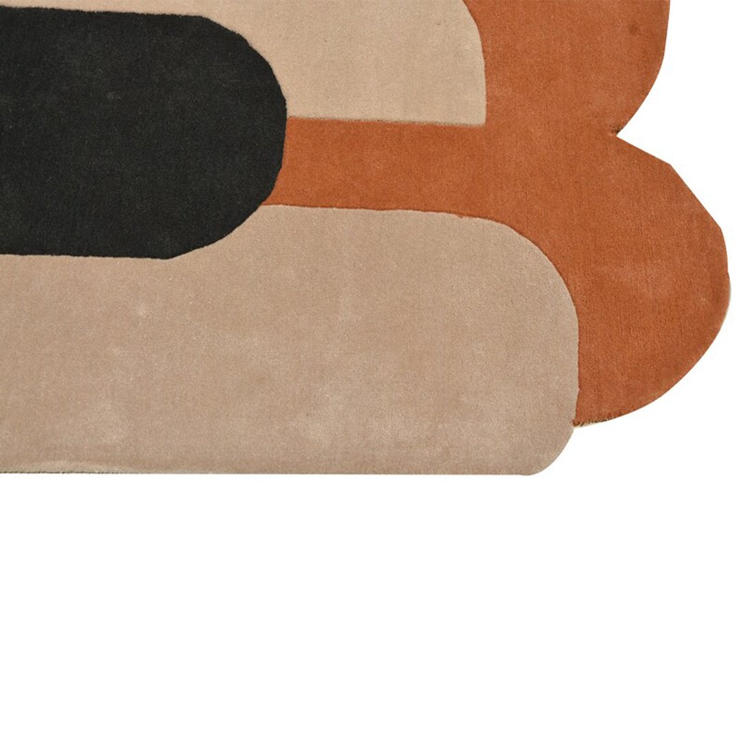 Soft Echoes” is a striking hand-tufted rug designed to feel like a modern art piece underfoot. Featuring gently overlapping shapes with softened edges, this design blends organic forms with geometric structure. Each block flows into the next with warm, earthy colours like burnt sienna, sand, cream, and soft peach, while deep charcoal black elements anchor the composition with visual weight and contrast.Crafted in high-quality wool or viscose, this rug adds personality and warmth to contemporary homes, creative studios, or gallery-inspired spaces. Its asymmetrical silhouette and layered composition make it ideal as a floor centerpiece or even as a statement wall hanging.
