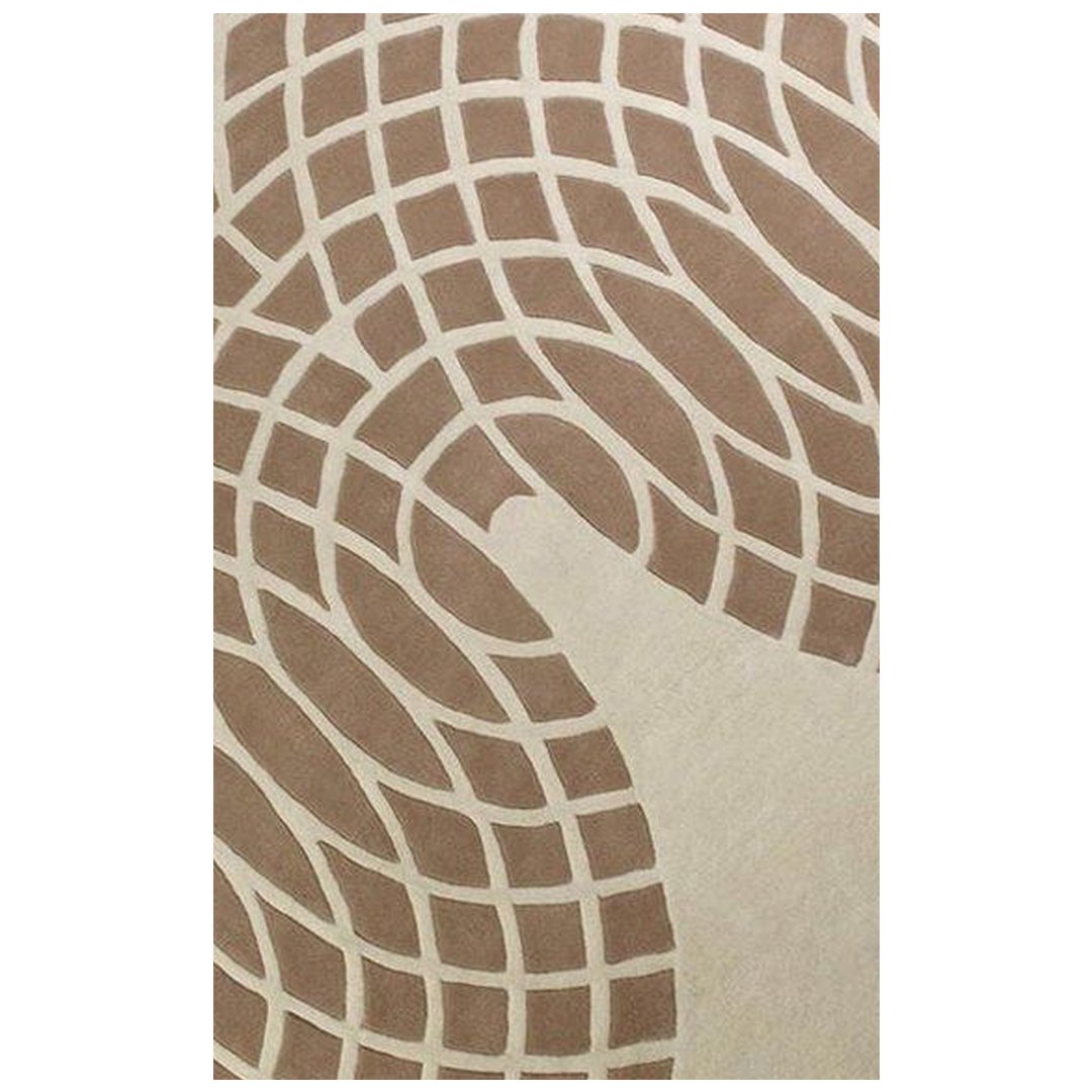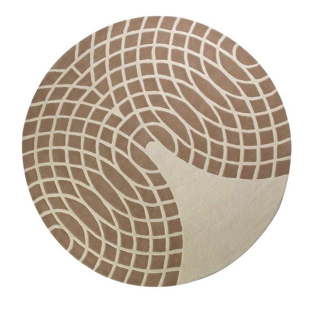 Elevate your space with this modern hand-tufted wool rug, designed in a striking circular shape with an intricate spiraling grid motif. The interplay of beige and ivory tones creates a harmonious, neutral palette with a bold geometric aesthetic. Ideal for contemporary and minimalist interiors seeking a unique focal point with soft texture and durability underfoot.