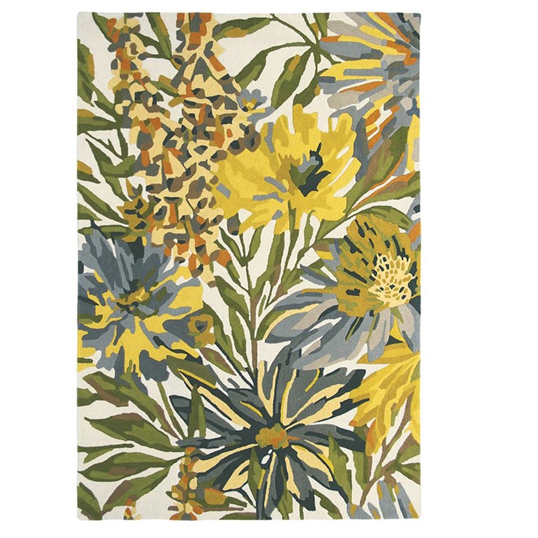 Hand-tufted wool rug blooming with bold florals in ivory, ochre, and slate—vivid, artistic, and full of texture for modern eclectic spaces.